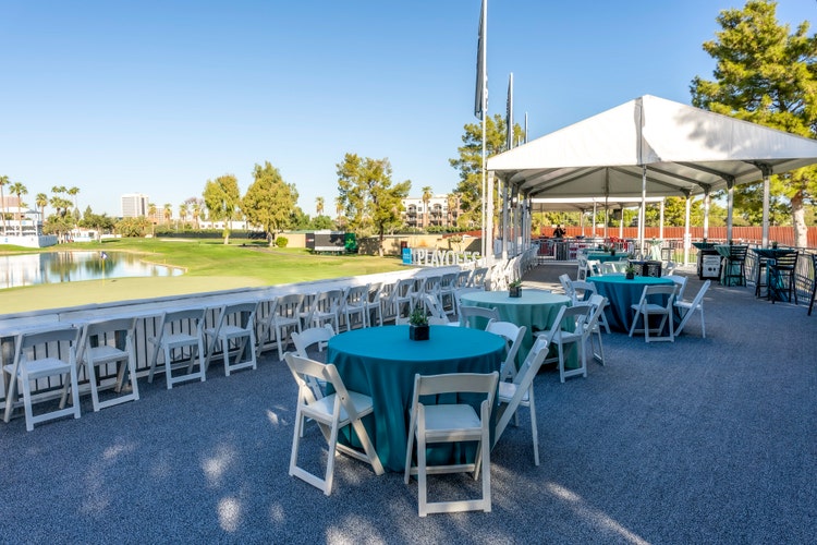But that’s not all — this lively venue also wraps around to give you views of the iconic par-3 Hole #15, so you won’t miss a moment of the action.